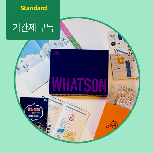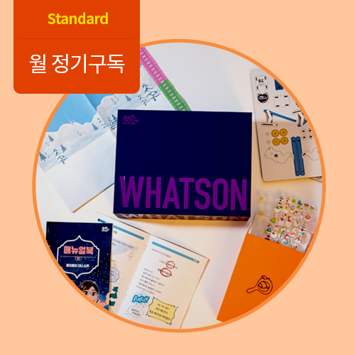 본 상품은 정가인 구독 상품과 1년 약정을 전제로 20% 할인을 제공하는 구독 상품이 있습니다. 매월 자동결제됩니다.왓슨키트에는 조립용키트, 조립매뉴얼, 워크북, 활동지 등이 포함되어 있습니다