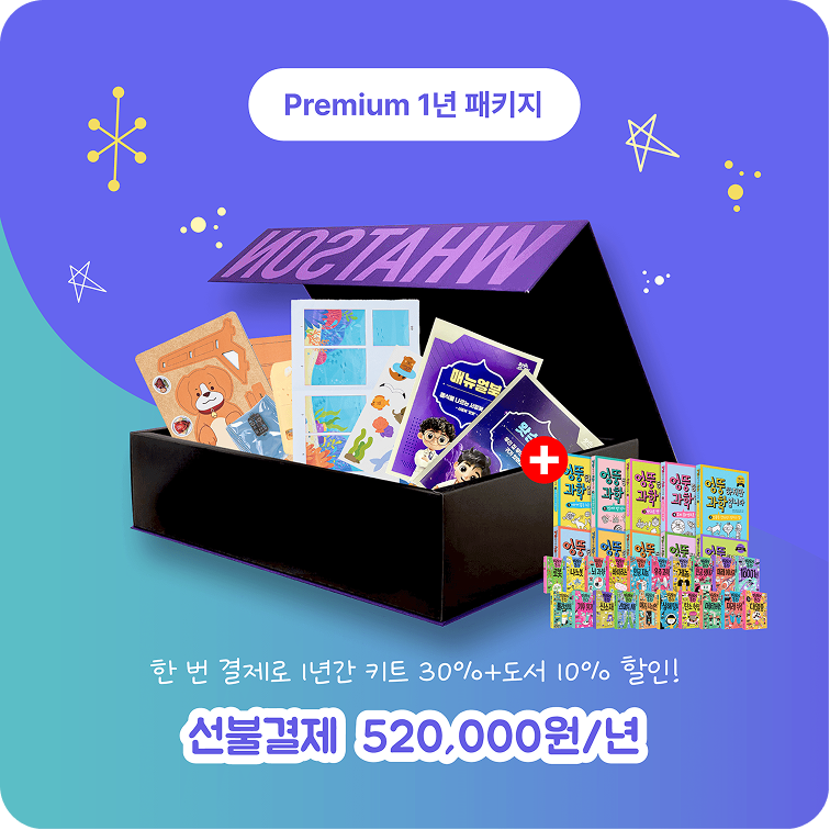 본 상품은 정가인 구독 상품과 1년 약정을 전제로 20% 할인을 제공하는 구독 상품이 있습니다. 매월 자동결제됩니다.왓슨키트에는 조립용키트, 조립매뉴얼, 워크북, 활동지 등이 포함되어 있습니다